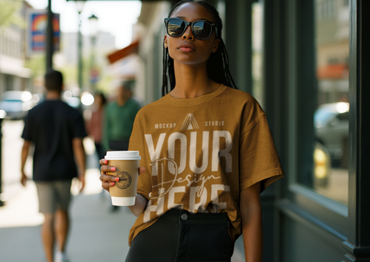 Oversized Slouchy T-Shirt Mockup | Female Model Street Style