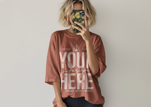 Oversized Slouchy Tee Selfie Mockup | PSD for Pinterest & TikTok Shop