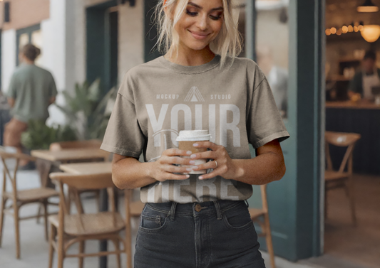 Comfort Colors 1717 T-Shirt Mockup | Candid Lifestyle Model | PSD for POD, Etsy & Shopify