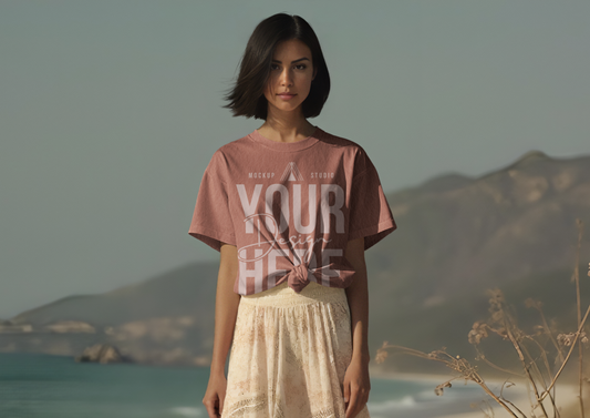 Oversized Tee Mockup With Front Knot | PSD Template for Etsy & Pinterest